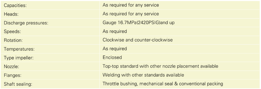The EBARA HSB/HDB is a multistage pump with a horizontal split casing, designed for high-pressure applications such as boiler air supply and desalination.